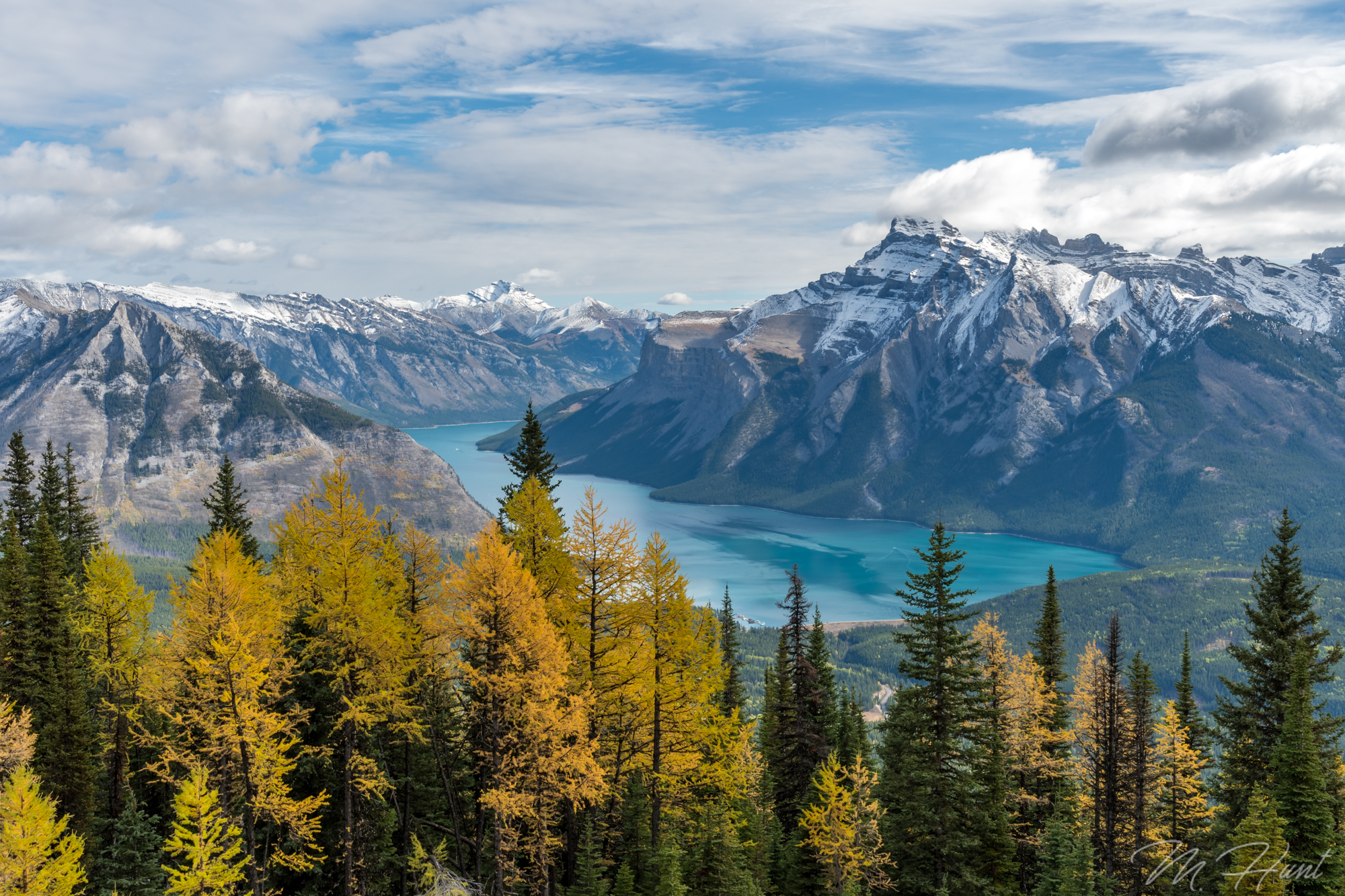 Aqua colored Lake Minnewanka. Golden larches. Snow-capped jagged peaks. Lush green pine forest. I’m not sure it could get much better!